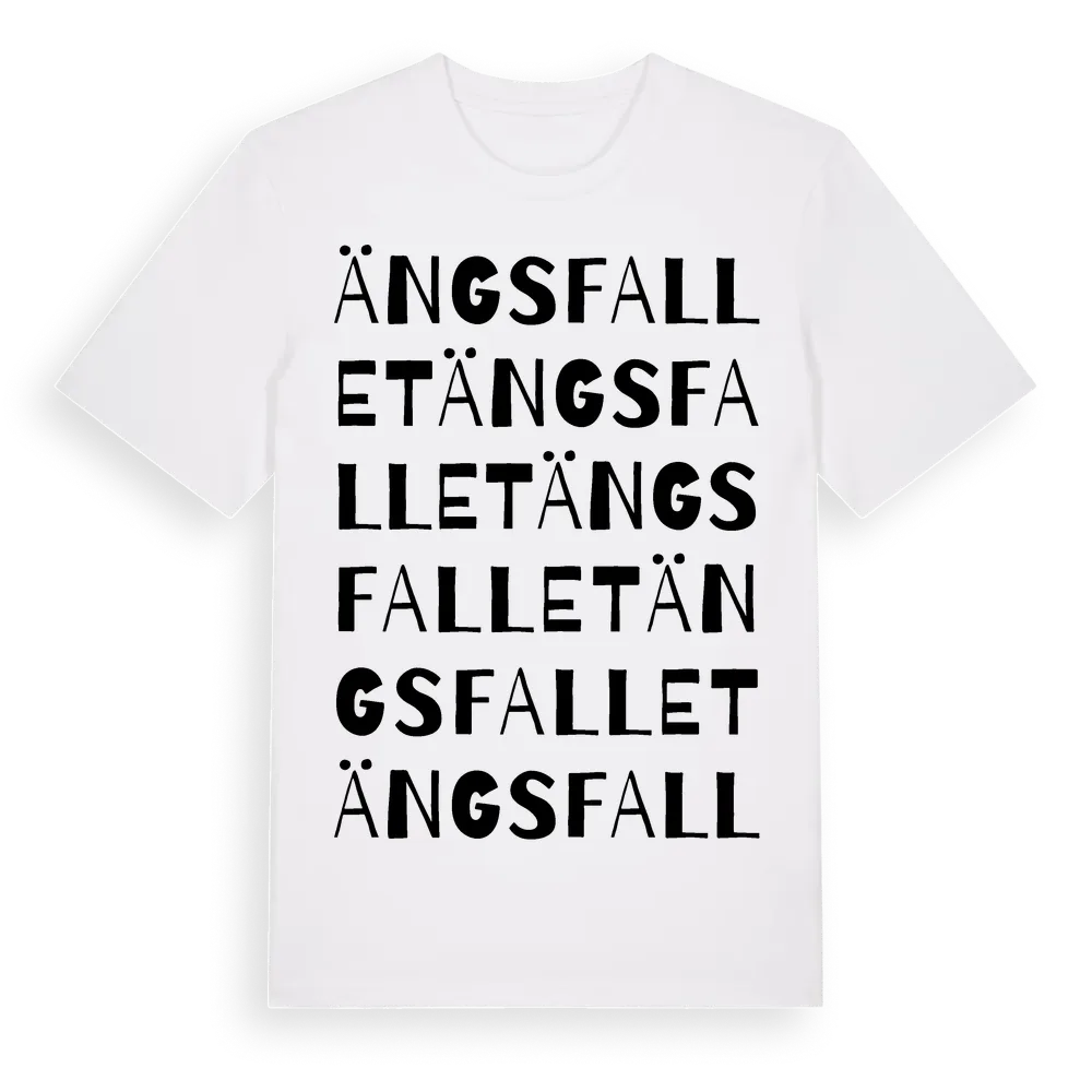 Ängsfallet ordlek t-shirt är inspirerad av Ängsfallet i Örebro län, Sverige. Tröjan är designad för dig som har en speciell koppling till platsen – oavsett om du bor här, har rötterna här eller bara älskar Ängsfallet.