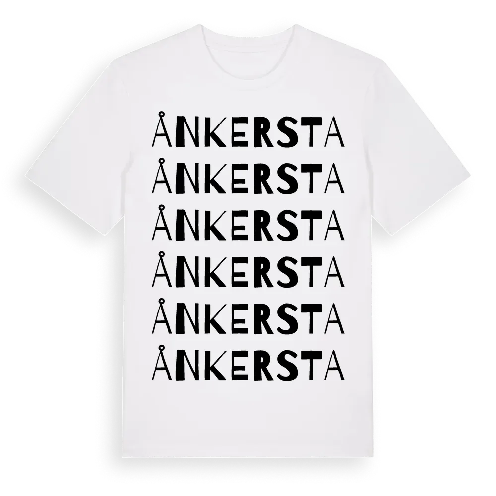 Ånkersta ordlek t-shirt är inspirerad av byn Ånkersta i Örebro län, Sverige. Tröjan är designad för dig som har en speciell koppling till platsen – oavsett om du bor här, har rötterna här eller bara älskar Ånkersta.