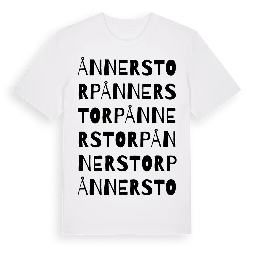 Ånnerstorp ordlek t-shirt är inspirerad av Ånnerstorp i Örebro län, Sverige. Tröjan är designad för dig som har en speciell koppling till platsen – oavsett om du bor här, har rötterna här eller bara älskar Ånnerstorp.