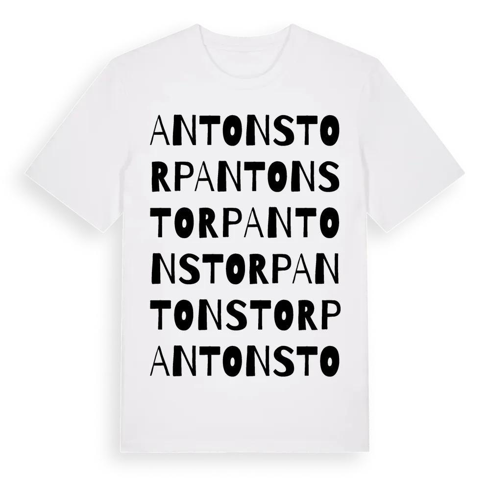 Antonstorp ordlek t-shirt är inspirerad av Antonstorp i Örebro län, Sverige. Tröjan är designad för dig som har en speciell koppling till platsen – oavsett om du bor här, har rötterna här eller bara älskar Antonstorp.