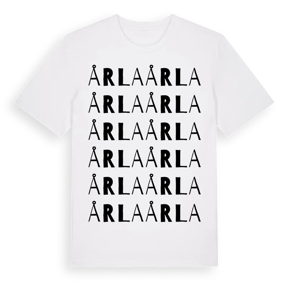 Årla ordlek t-shirt är inspirerad av Årla i Örebro län, Sverige. Tröjan är designad för dig som har en speciell koppling till platsen – oavsett om du bor här, har rötterna här eller bara älskar Årla.