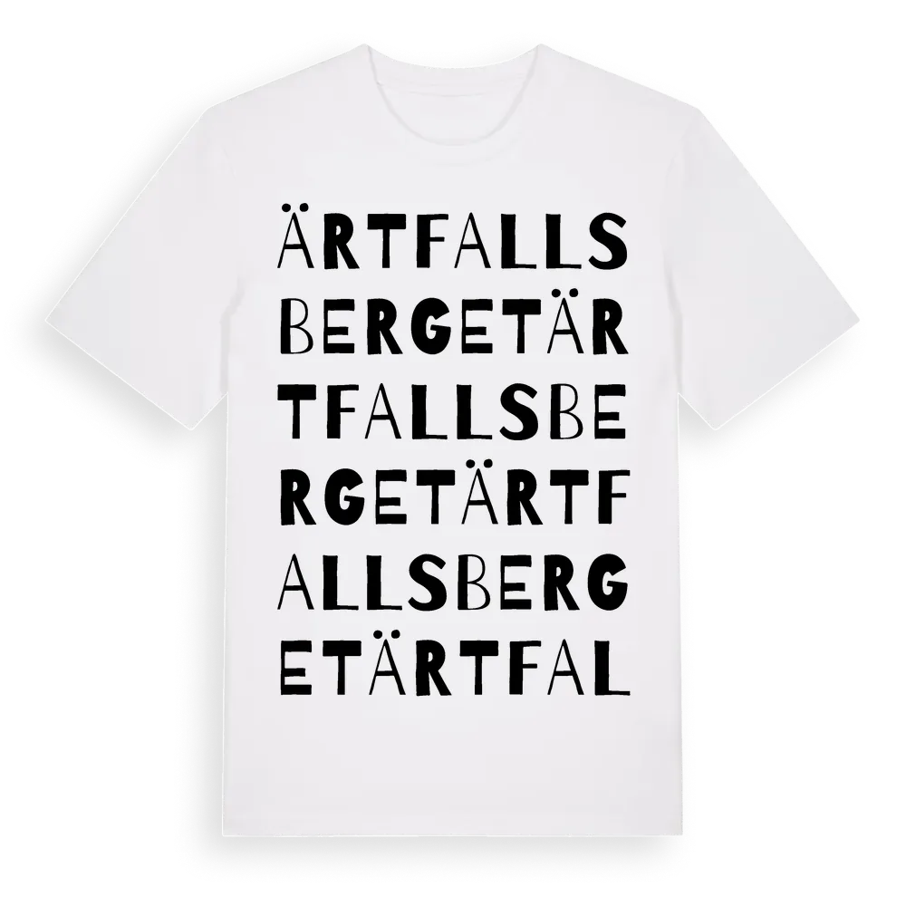 Ärtfallsberget ordlek t-shirt är inspirerad av Ärtfallsberget i Örebro län, Sverige. Tröjan är designad för dig som har en speciell koppling till platsen – oavsett om du bor här, har rötterna här eller bara älskar Ärtfallsberget.