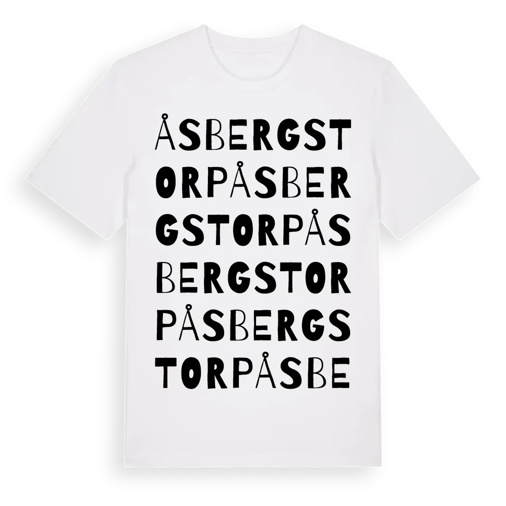 Åsbergstorp ordlek t-shirt är inspirerad av Åsbergstorp i Örebro län, Sverige. Tröjan är designad för dig som har en speciell koppling till platsen – oavsett om du bor här, har rötterna här eller bara älskar Åsbergstorp.