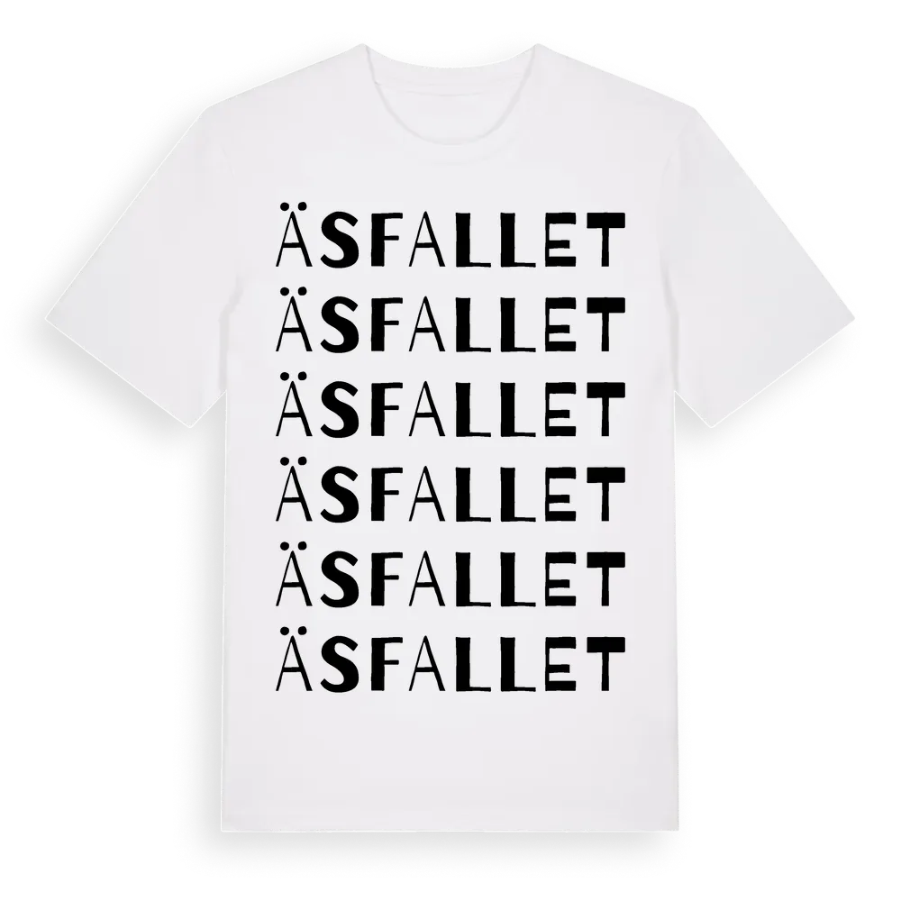 Äsfallet ordlek t-shirt är inspirerad av Äsfallet i Örebro län, Sverige. Tröjan är designad för dig som har en speciell koppling till platsen – oavsett om du bor här, har rötterna här eller bara älskar Äsfallet.