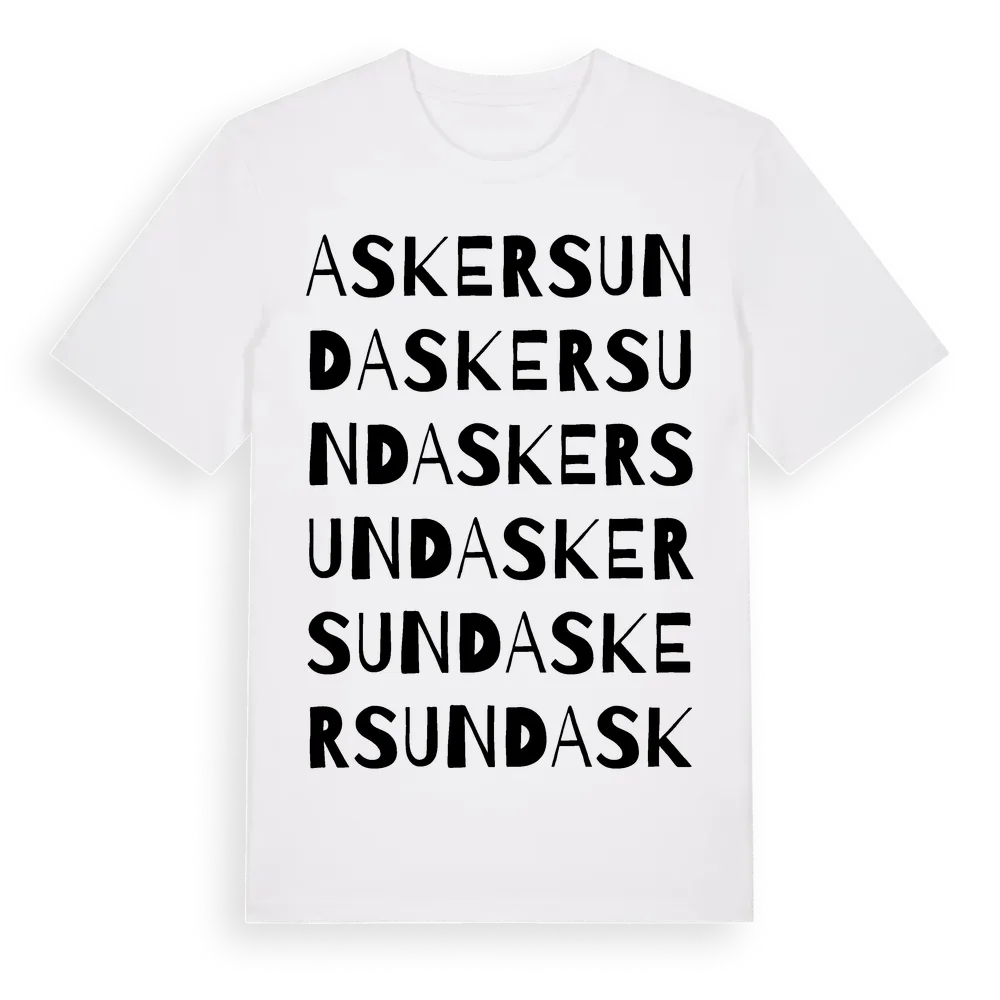 Askersund ordlek t-shirt är inspirerad av staden Askersund i Örebro län, Sverige. Tröjan är designad för dig som har en speciell koppling till platsen – oavsett om du bor här, har rötterna här eller bara älskar Askersund.