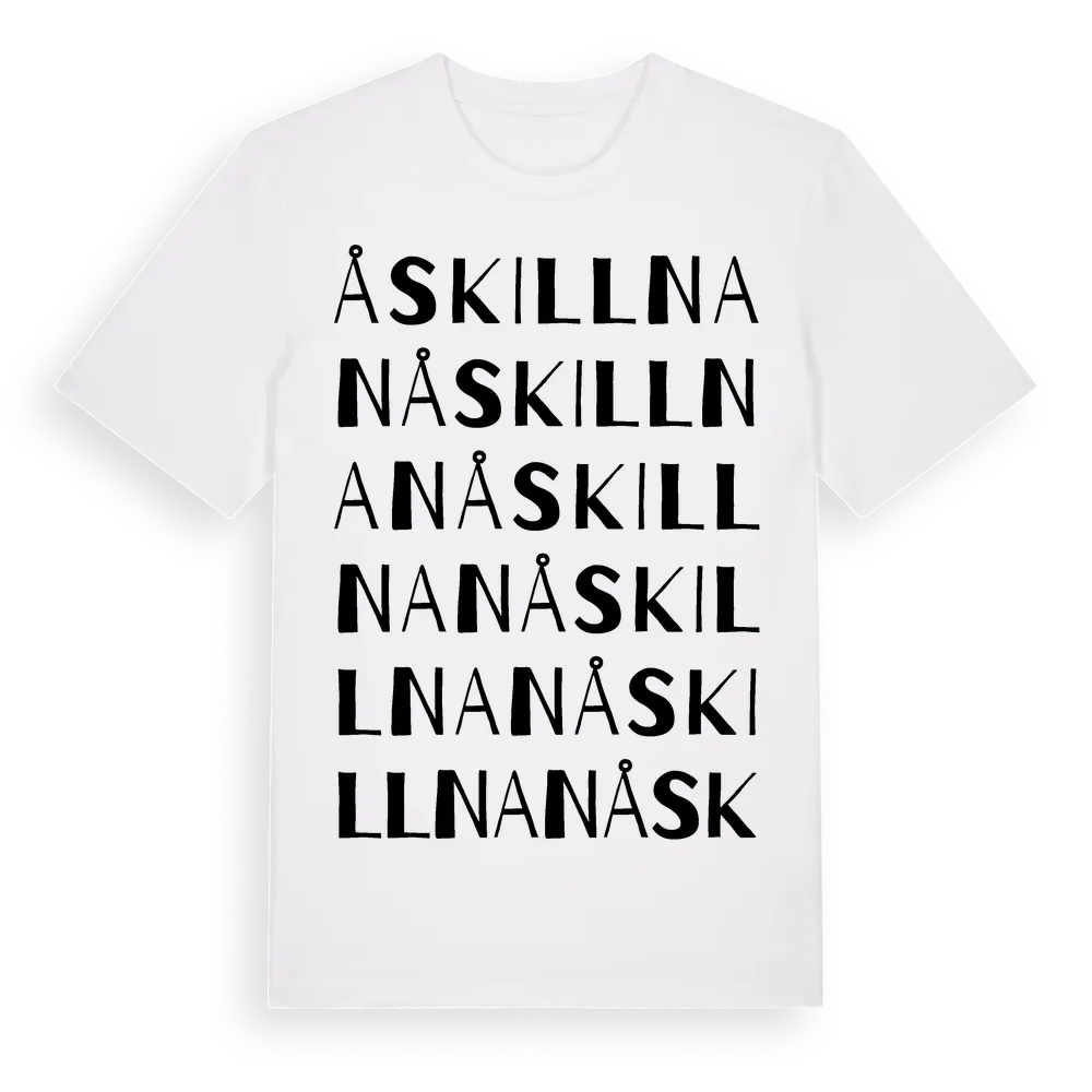 Åskillnan ordlek t-shirt är inspirerad av Åskillnan i Örebro län, Sverige. Tröjan är designad för dig som har en speciell koppling till platsen – oavsett om du bor här, har rötterna här eller bara älskar Åskillnan.