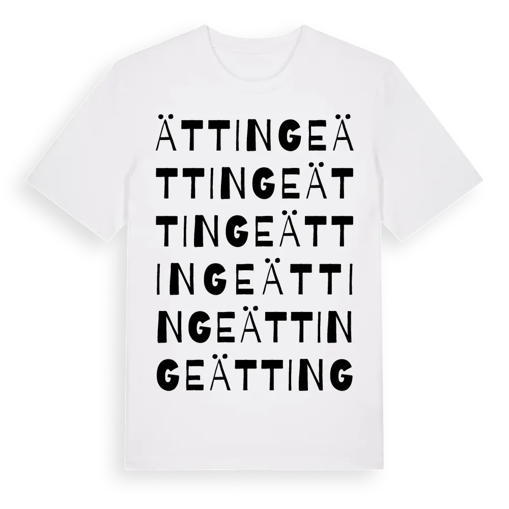 En ordlek byggd på Ättinges namn. Subtilt och klurig – ett motiv som bara de som verkligen känner platsen fullt ut förstår. Premium bomull, unisex – från byn Ättinge i Örebro län.