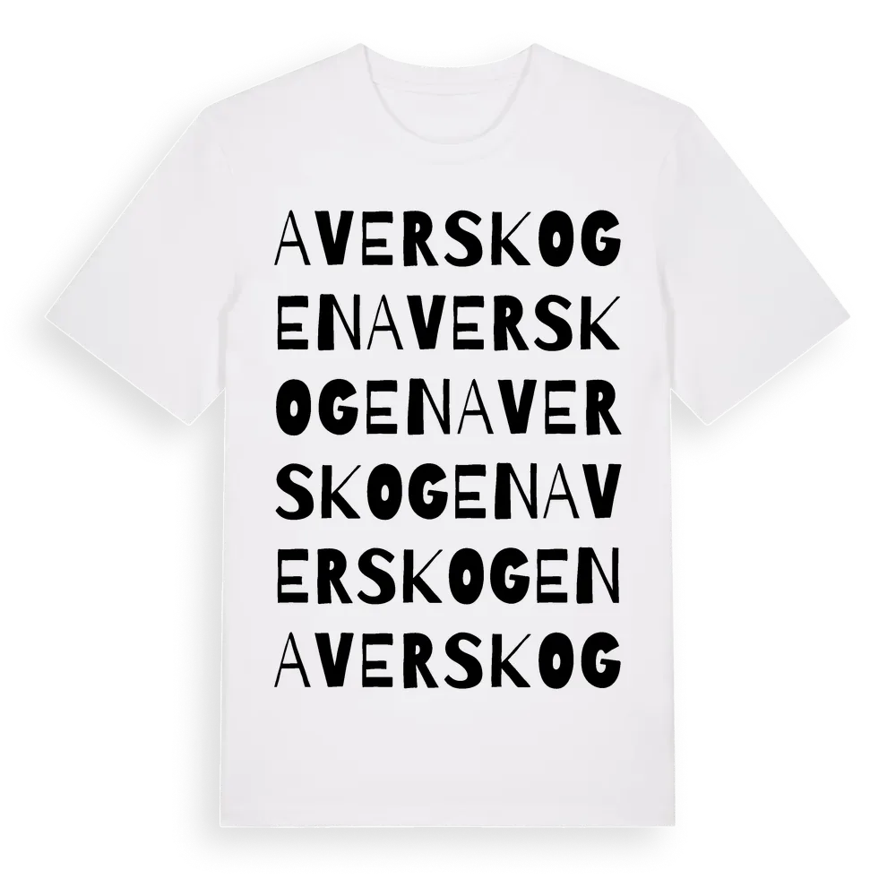 Averskogen ordlek t-shirt är inspirerad av byn Averskogen i Örebro län, Sverige. Tröjan är designad för dig som har en speciell koppling till platsen – oavsett om du bor här, har rötterna här eller bara älskar Averskogen.