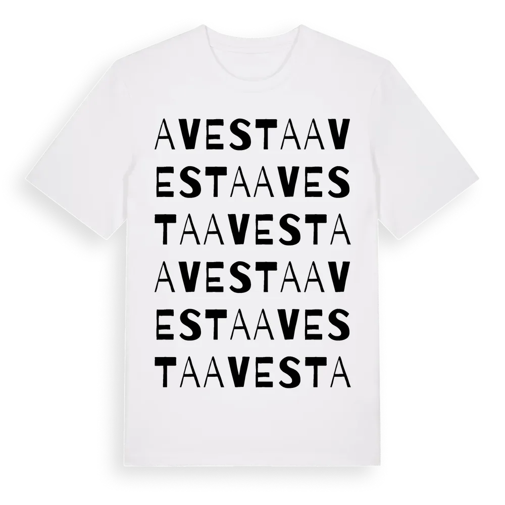 En ordlek byggd på Avestas namn. Subtilt och klurig – ett motiv som bara de som verkligen känner platsen fullt ut förstår. Premium bomull, unisex – från Avesta i Örebro län.