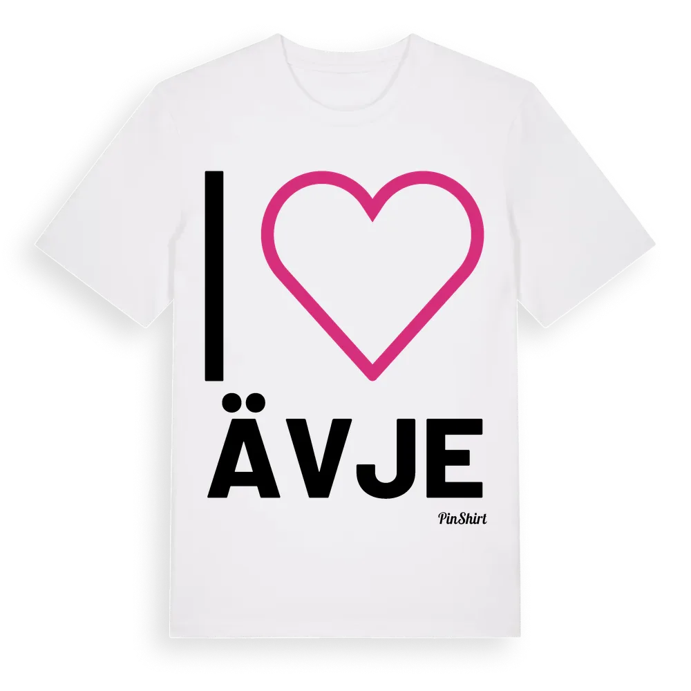 Det klassiska "I ❤ Ävje"-motivet i stort format som täcker hela bröstet. För dig som vill visa kärleken till Ävje på riktigt. Premium bomull, unisex – från byn Ävje i Örebro län.