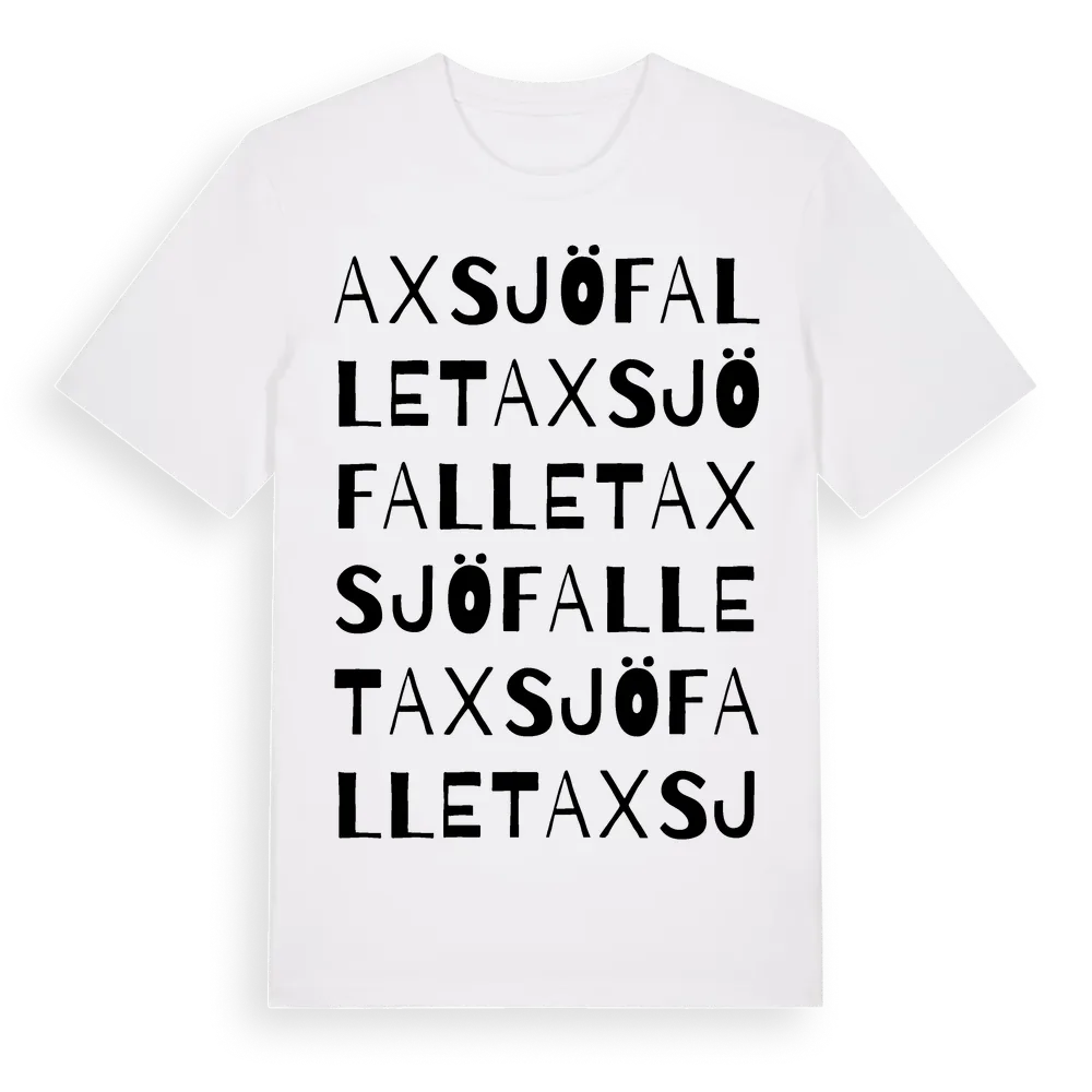 Axsjöfallet ordlek t-shirt är inspirerad av Axsjöfallet i Örebro län, Sverige. Tröjan är designad för dig som har en speciell koppling till platsen – oavsett om du bor här, har rötterna här eller bara älskar Axsjöfallet.