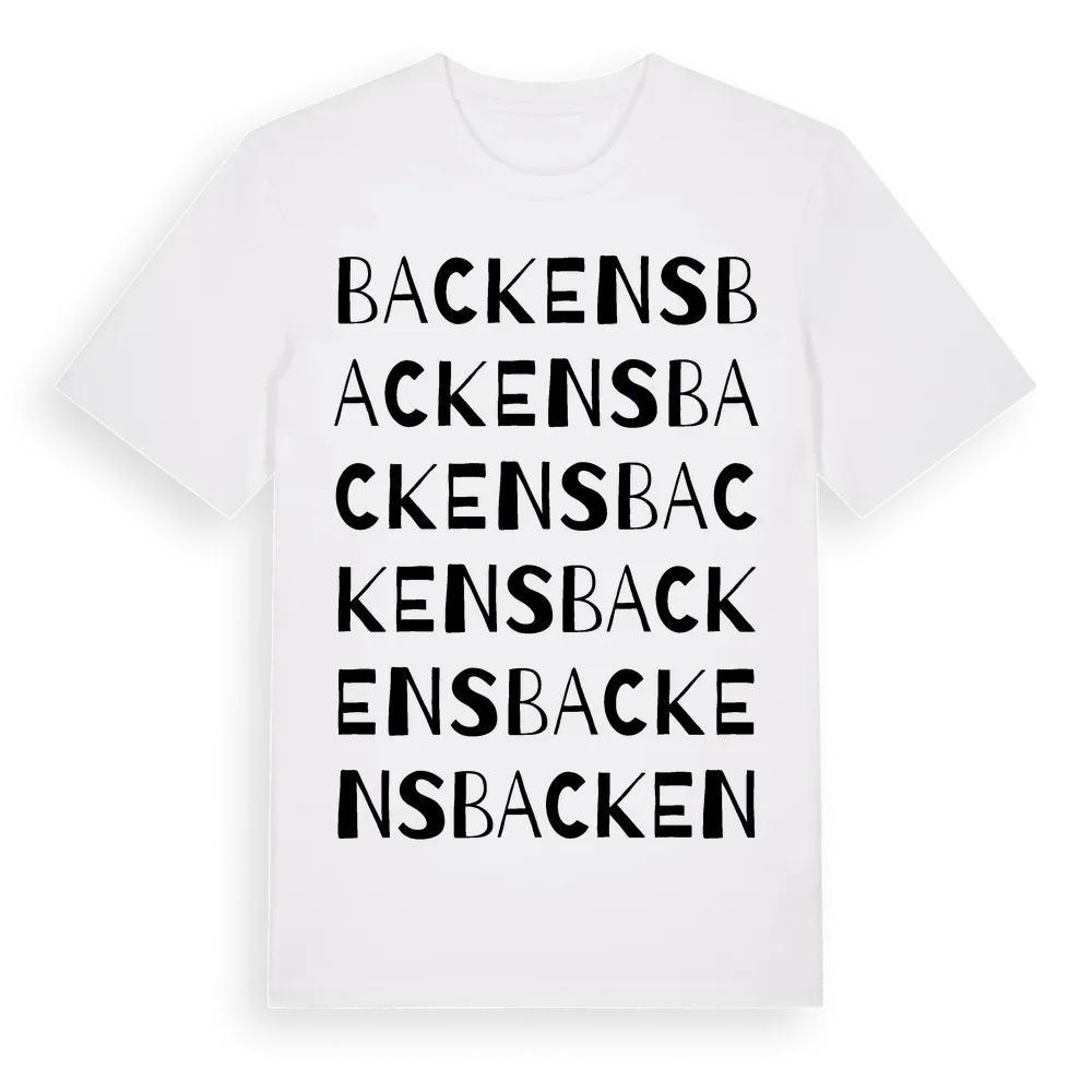 Backens ordlek t-shirt är inspirerad av Backens i Örebro län, Sverige. Tröjan är designad för dig som har en speciell koppling till platsen – oavsett om du bor här, har rötterna här eller bara älskar Backens.
