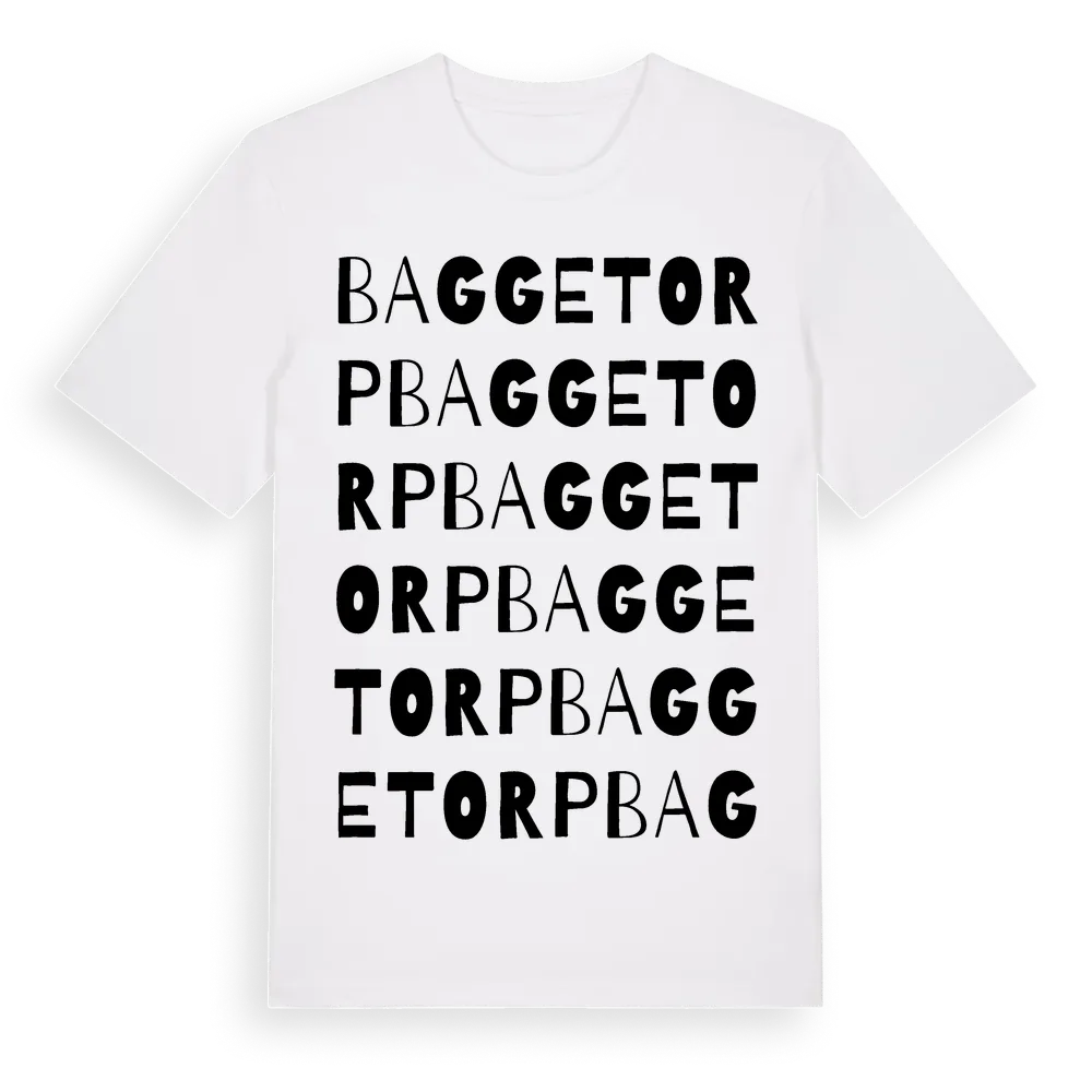 Baggetorp ordlek t-shirt är inspirerad av byn Baggetorp i Örebro län, Sverige. Tröjan är designad för dig som har en speciell koppling till platsen – oavsett om du bor här, har rötterna här eller bara älskar Baggetorp.