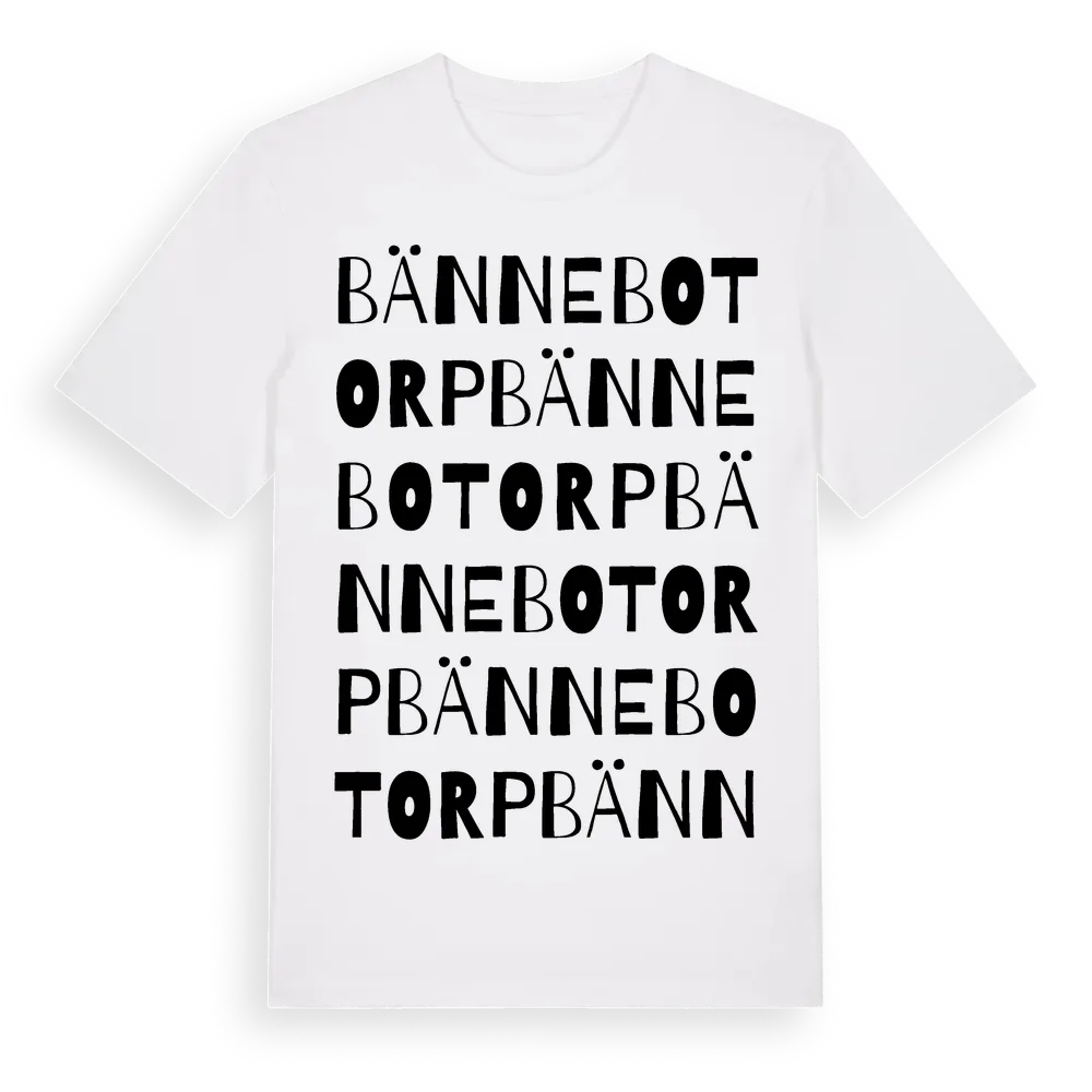 Bännebotorp ordlek t-shirt är inspirerad av Bännebotorp i Örebro län, Sverige. Tröjan är designad för dig som har en speciell koppling till platsen – oavsett om du bor här, har rötterna här eller bara älskar Bännebotorp.