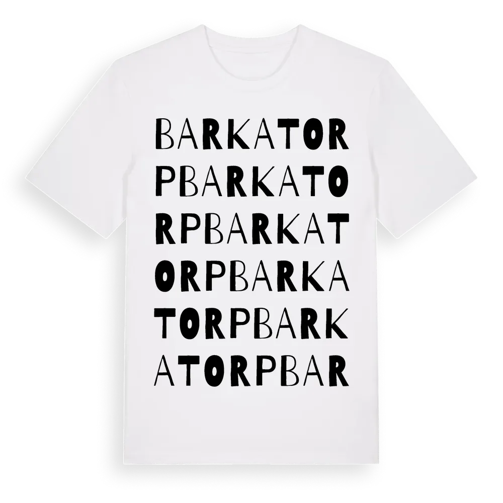 Barkatorp ordlek t-shirt är inspirerad av Barkatorp i Örebro län, Sverige. Tröjan är designad för dig som har en speciell koppling till platsen – oavsett om du bor här, har rötterna här eller bara älskar Barkatorp.
