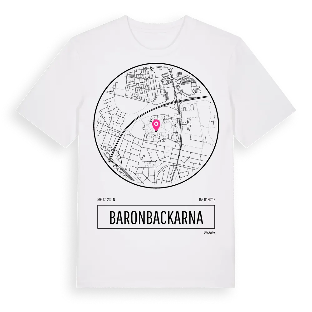 Ett rent, runt tryck med Baronbackarnas namn. Minimalistiskt och stilrent – perfekt för den som känner platsen utan att skrika det. Premium bomull, unisex – från stadsdelen Baronbackarna i Örebro län.