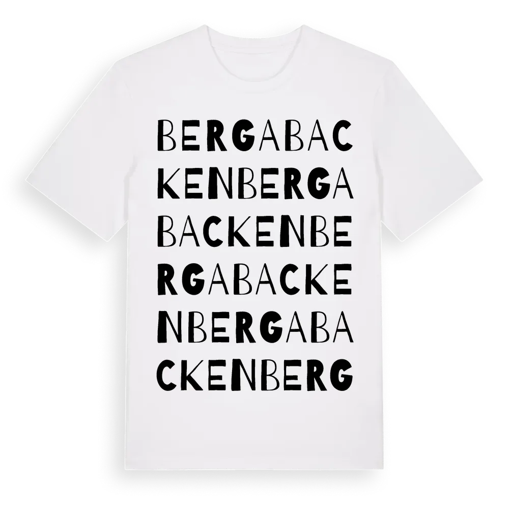 Bergabacken ordlek t-shirt är inspirerad av Bergabacken i Örebro län, Sverige. Tröjan är designad för dig som har en speciell koppling till platsen – oavsett om du bor här, har rötterna här eller bara älskar Bergabacken.