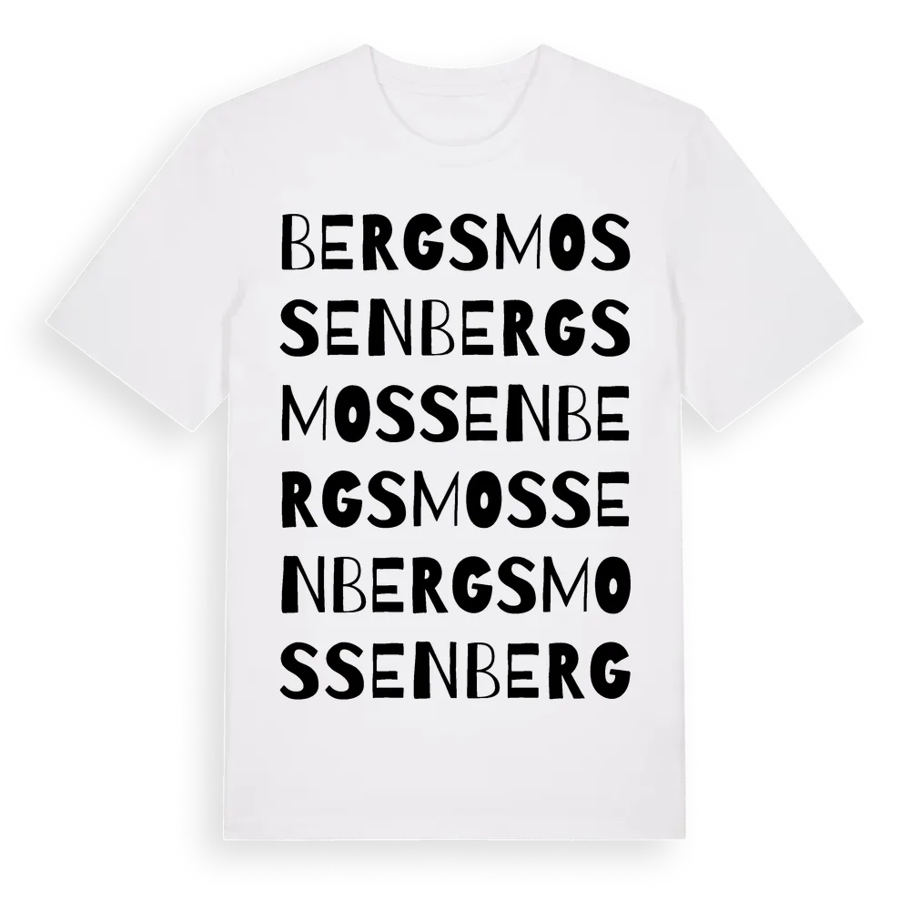 Bergsmossen ordlek t-shirt är inspirerad av Bergsmossen i Örebro län, Sverige. Tröjan är designad för dig som har en speciell koppling till platsen – oavsett om du bor här, har rötterna här eller bara älskar Bergsmossen.