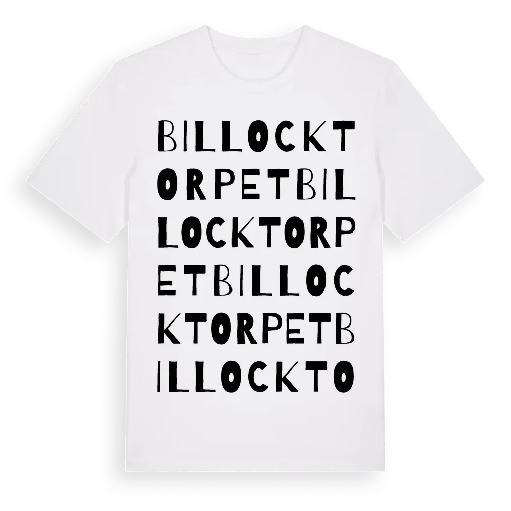 Billocktorpet ordlek t-shirt är inspirerad av Billocktorpet i Örebro län, Sverige. Tröjan är designad för dig som har en speciell koppling till platsen – oavsett om du bor här, har rötterna här eller bara älskar Billocktorpet.