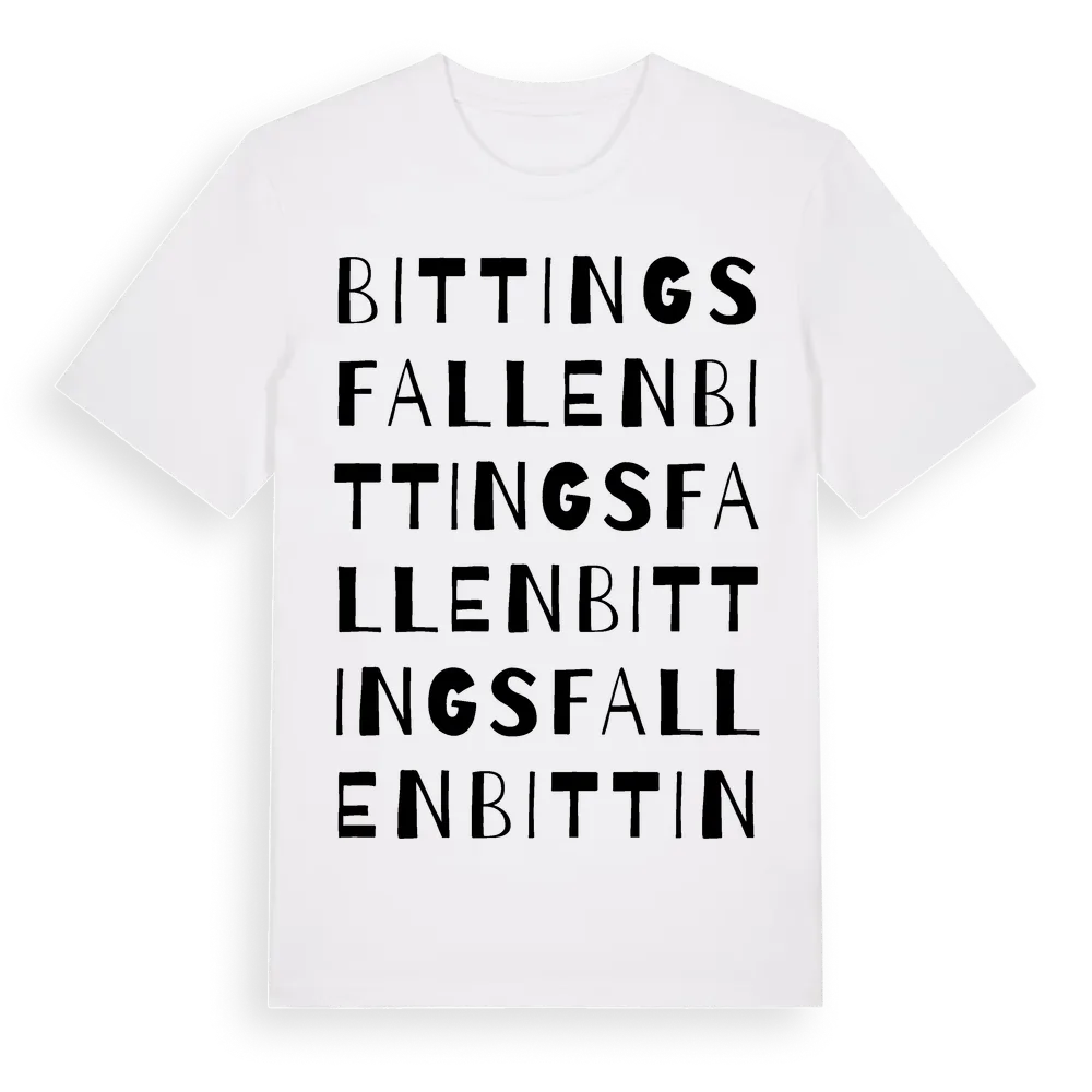 En ordlek byggd på Bittingsfallens namn. Subtilt och klurig – ett motiv som bara de som verkligen känner platsen fullt ut förstår. Premium bomull, unisex – från byn Bittingsfallen i Örebro län.