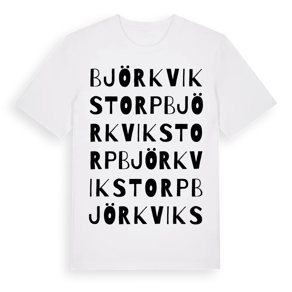 Björkvikstorp ordlek t-shirt är inspirerad av Björkvikstorp i Örebro län, Sverige. Tröjan är designad för dig som har en speciell koppling till platsen – oavsett om du bor här, har rötterna här eller bara älskar Björkvikstorp.