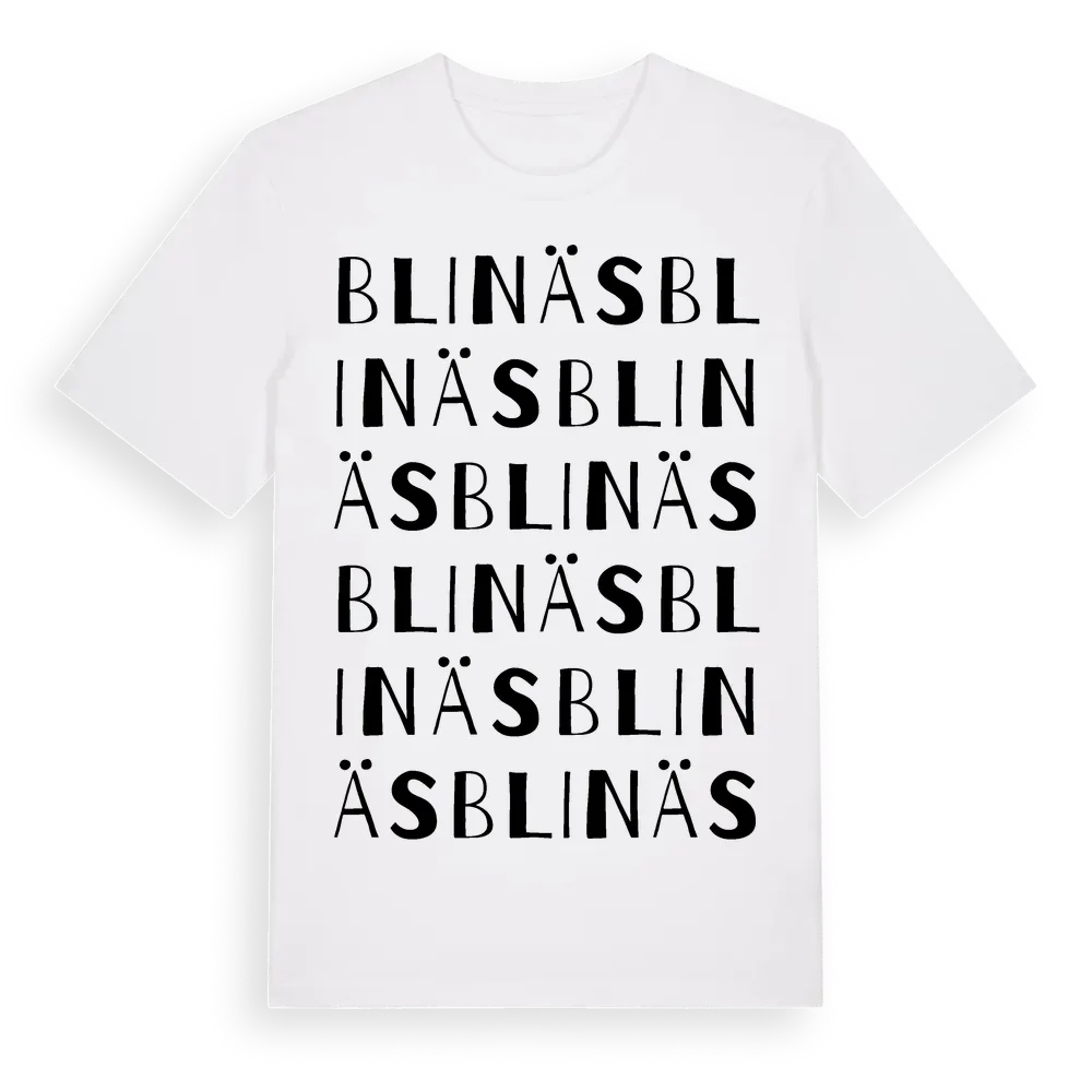 En ordlek byggd på Blinäss namn. Subtilt och klurig – ett motiv som bara de som verkligen känner platsen fullt ut förstår. Premium bomull, unisex – från Blinäs i Örebro län.