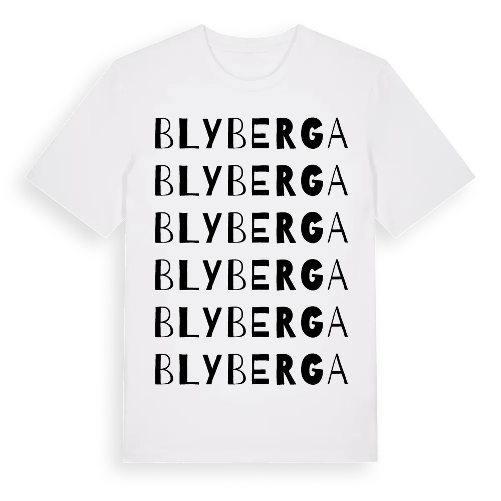 Blyberga ordlek t-shirt är inspirerad av byn Blyberga i Örebro län, Sverige. Tröjan är designad för dig som har en speciell koppling till platsen – oavsett om du bor här, har rötterna här eller bara älskar Blyberga.