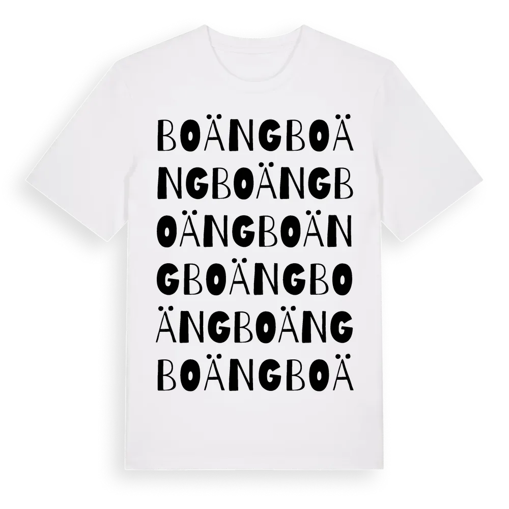 Boäng ordlek t-shirt är inspirerad av Boäng i Örebro län, Sverige. Tröjan är designad för dig som har en speciell koppling till platsen – oavsett om du bor här, har rötterna här eller bara älskar Boäng.