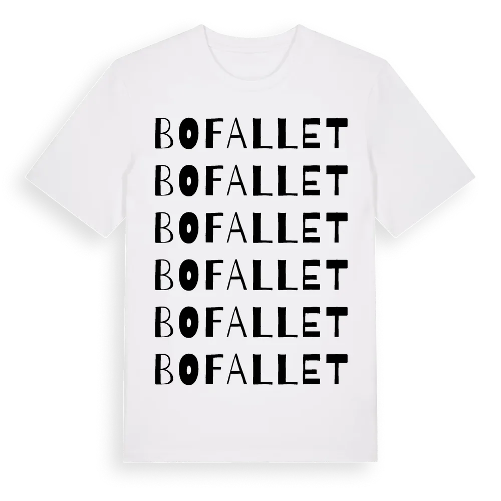 Bofallet ordlek t-shirt är inspirerad av Bofallet i Örebro län, Sverige. Tröjan är designad för dig som har en speciell koppling till platsen – oavsett om du bor här, har rötterna här eller bara älskar Bofallet.