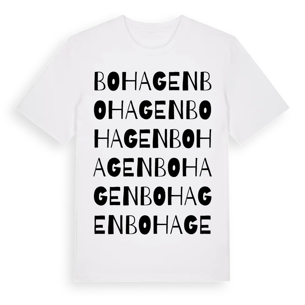 Bohagen ordlek t-shirt är inspirerad av byn Bohagen i Örebro län, Sverige. Tröjan är designad för dig som har en speciell koppling till platsen – oavsett om du bor här, har rötterna här eller bara älskar Bohagen.