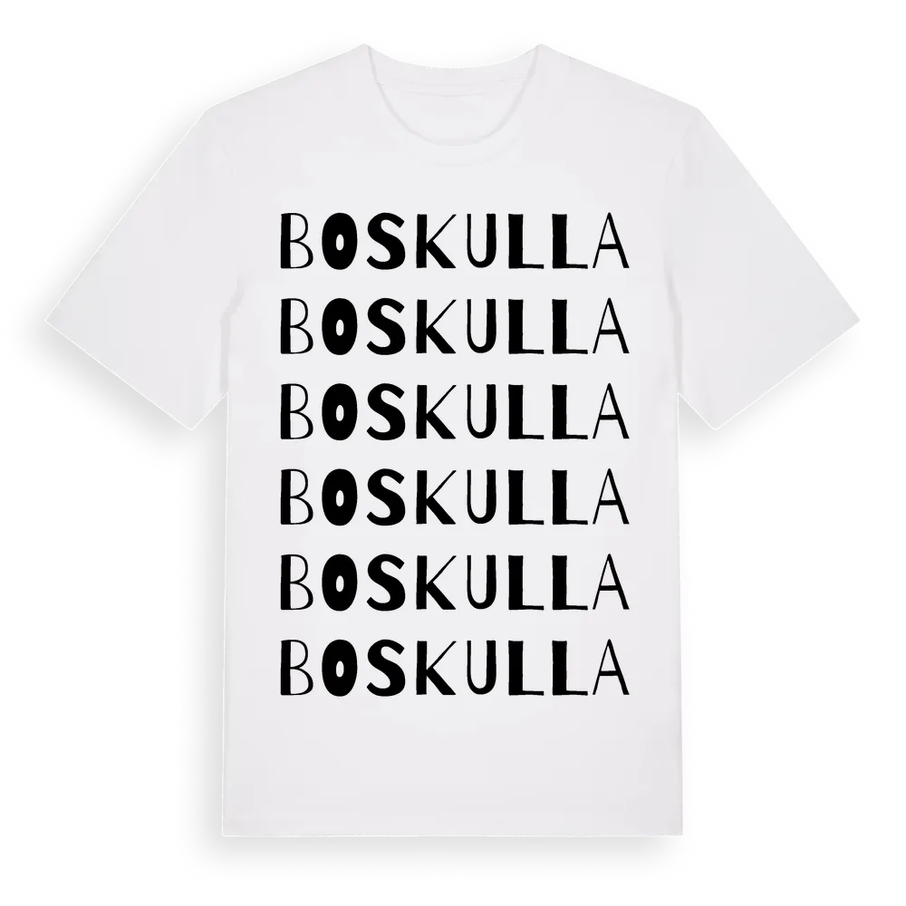 Boskulla ordlek t-shirt är inspirerad av Boskulla i Örebro län, Sverige. Tröjan är designad för dig som har en speciell koppling till platsen – oavsett om du bor här, har rötterna här eller bara älskar Boskulla.