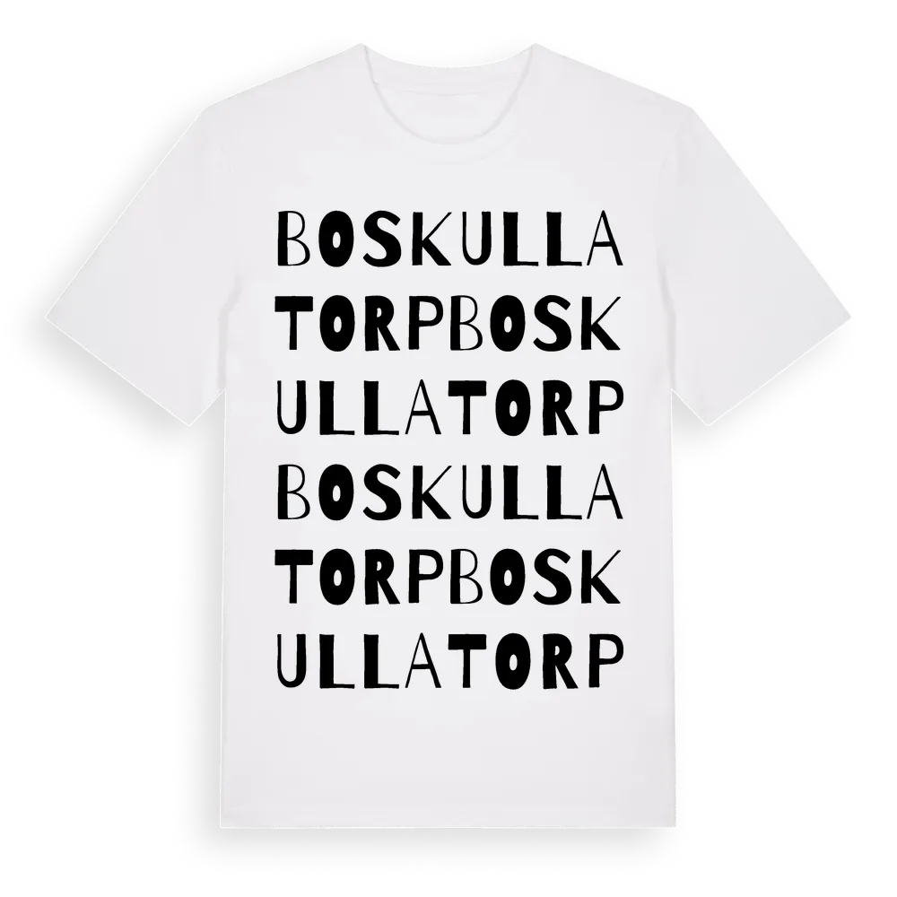 Boskullatorp ordlek t-shirt är inspirerad av Boskullatorp i Örebro län, Sverige. Tröjan är designad för dig som har en speciell koppling till platsen – oavsett om du bor här, har rötterna här eller bara älskar Boskullatorp.