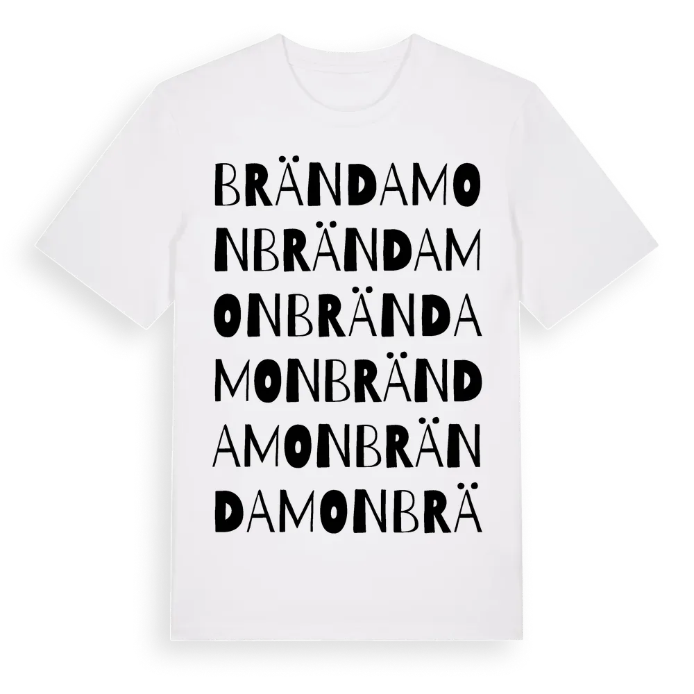 Brända Mon ordlek t-shirt är inspirerad av Brända Mon i Örebro län, Sverige. Tröjan är designad för dig som har en speciell koppling till platsen – oavsett om du bor här, har rötterna här eller bara älskar Brända Mon.