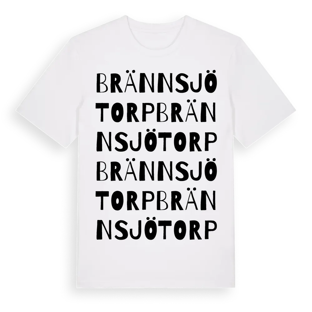 Brännsjötorp ordlek t-shirt är inspirerad av Brännsjötorp i Örebro län, Sverige. Tröjan är designad för dig som har en speciell koppling till platsen – oavsett om du bor här, har rötterna här eller bara älskar Brännsjötorp.