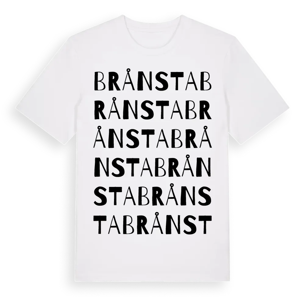 Brånsta ordlek t-shirt är inspirerad av byn Brånsta i Örebro län, Sverige. Tröjan är designad för dig som har en speciell koppling till platsen – oavsett om du bor här, har rötterna här eller bara älskar Brånsta.
