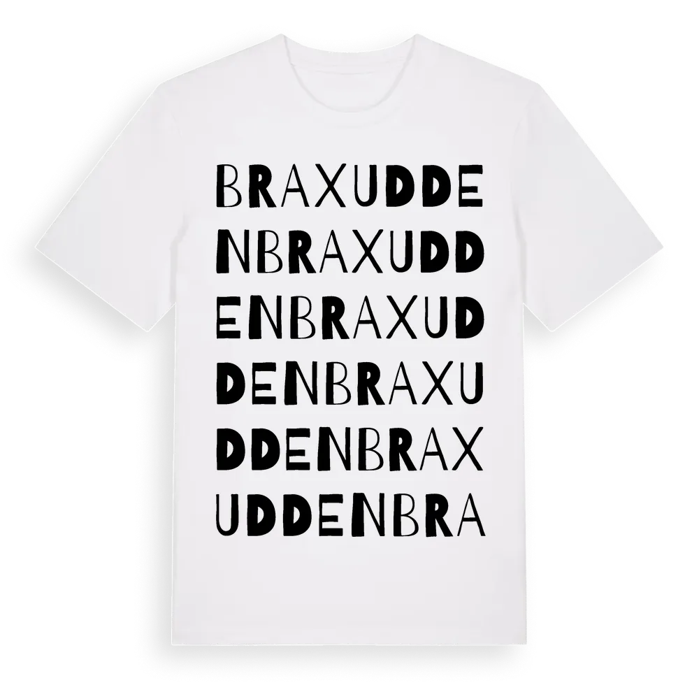 Braxudden ordlek t-shirt är inspirerad av Braxudden i Örebro län, Sverige. Tröjan är designad för dig som har en speciell koppling till platsen – oavsett om du bor här, har rötterna här eller bara älskar Braxudden.