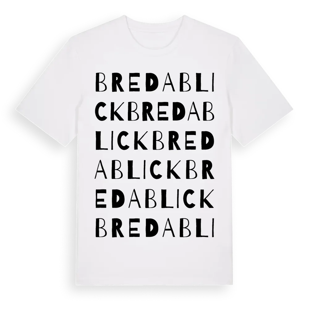 Bredablick ordlek t-shirt är inspirerad av Bredablick i Örebro län, Sverige. Tröjan är designad för dig som har en speciell koppling till platsen – oavsett om du bor här, har rötterna här eller bara älskar Bredablick.