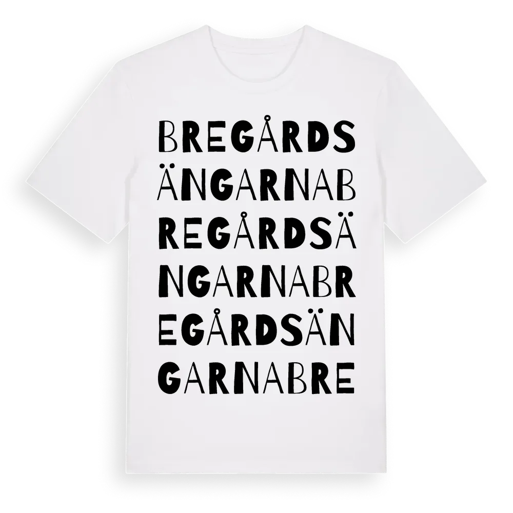 Bregårdsängarna ordlek t-shirt är inspirerad av byn Bregårdsängarna i Örebro län, Sverige. Tröjan är designad för dig som har en speciell koppling till platsen – oavsett om du bor här, har rötterna här eller bara älskar Bregårdsängarna.
