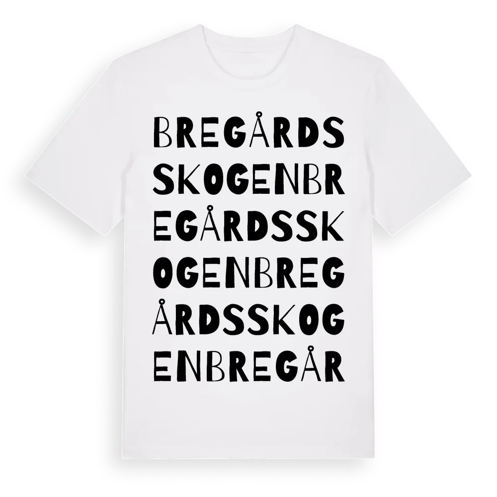 Bregårdsskogen ordlek t-shirt är inspirerad av Bregårdsskogen i Örebro län, Sverige. Tröjan är designad för dig som har en speciell koppling till platsen – oavsett om du bor här, har rötterna här eller bara älskar Bregårdsskogen.