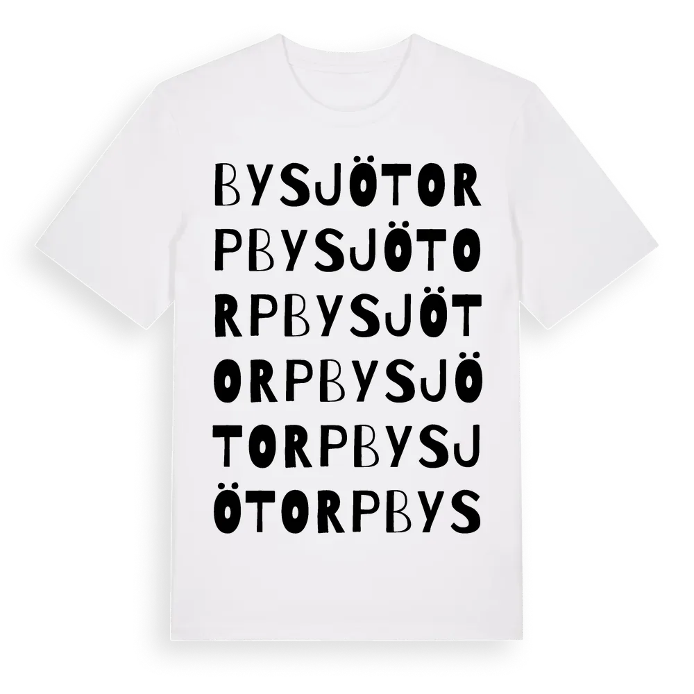 Bysjötorp ordlek t-shirt är inspirerad av Bysjötorp i Örebro län, Sverige. Tröjan är designad för dig som har en speciell koppling till platsen – oavsett om du bor här, har rötterna här eller bara älskar Bysjötorp.