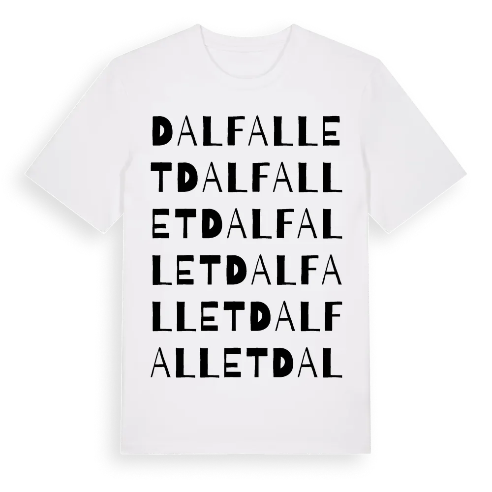 Dalfallet ordlek t-shirt är inspirerad av Dalfallet i Örebro län, Sverige. Tröjan är designad för dig som har en speciell koppling till platsen – oavsett om du bor här, har rötterna här eller bara älskar Dalfallet.