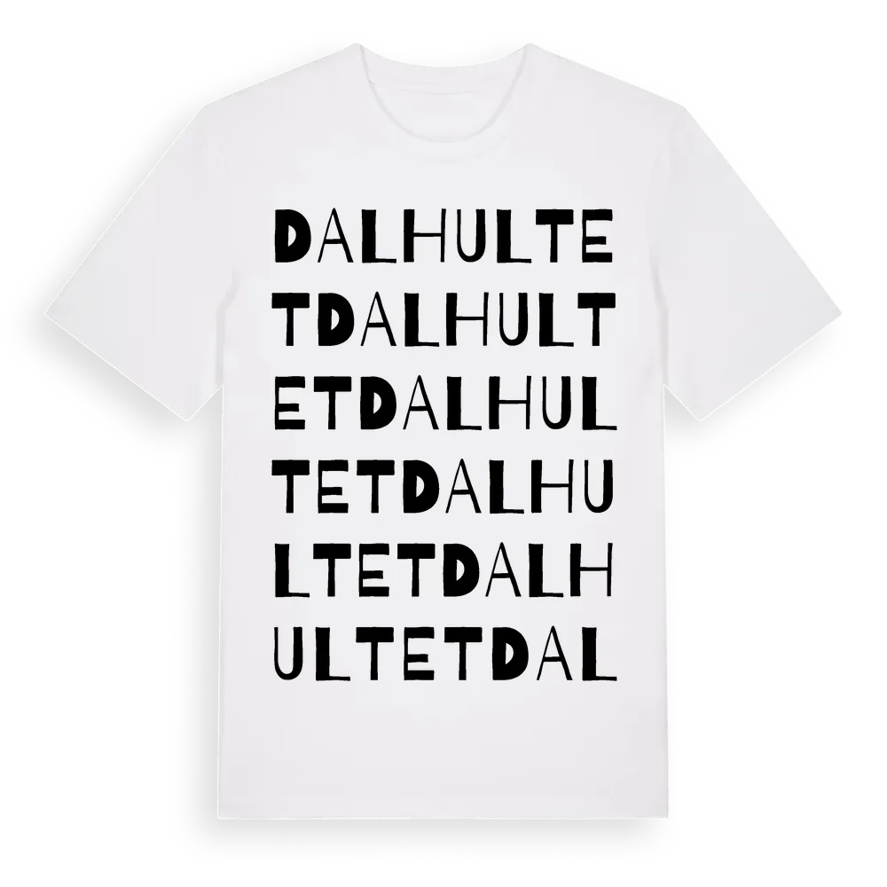 Dalhultet ordlek t-shirt är inspirerad av Dalhultet i Örebro län, Sverige. Tröjan är designad för dig som har en speciell koppling till platsen – oavsett om du bor här, har rötterna här eller bara älskar Dalhultet.