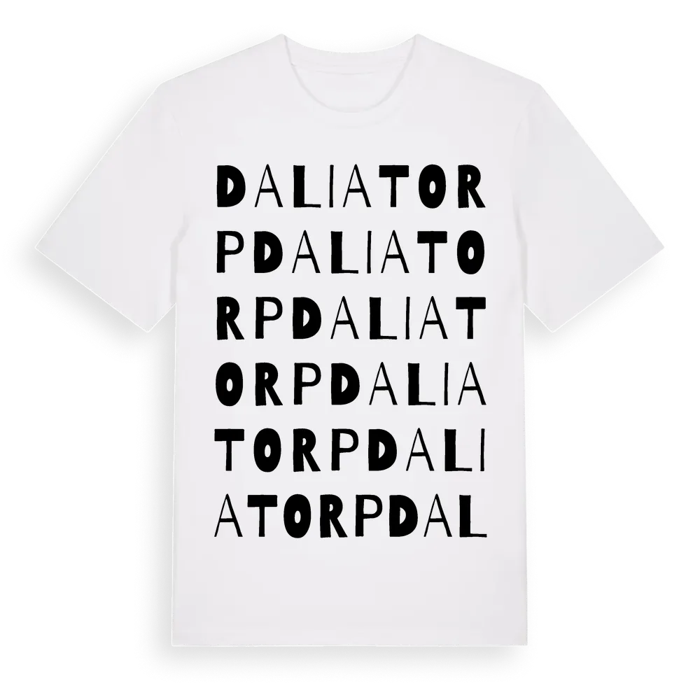 Daliatorp ordlek t-shirt är inspirerad av Daliatorp i Örebro län, Sverige. Tröjan är designad för dig som har en speciell koppling till platsen – oavsett om du bor här, har rötterna här eller bara älskar Daliatorp.