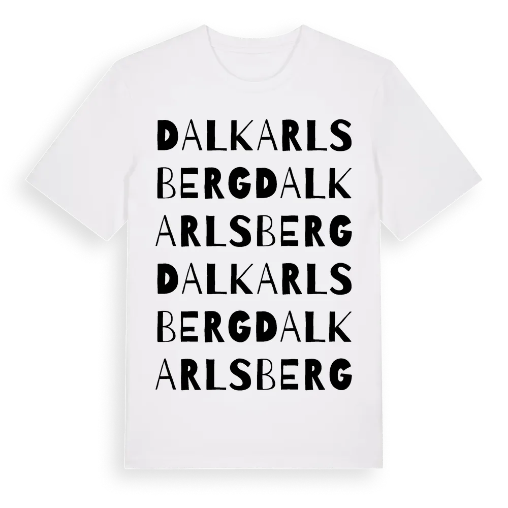 Dalkarlsberg ordlek t-shirt är inspirerad av byn Dalkarlsberg i Örebro län, Sverige. Tröjan är designad för dig som har en speciell koppling till platsen – oavsett om du bor här, har rötterna här eller bara älskar Dalkarlsberg.