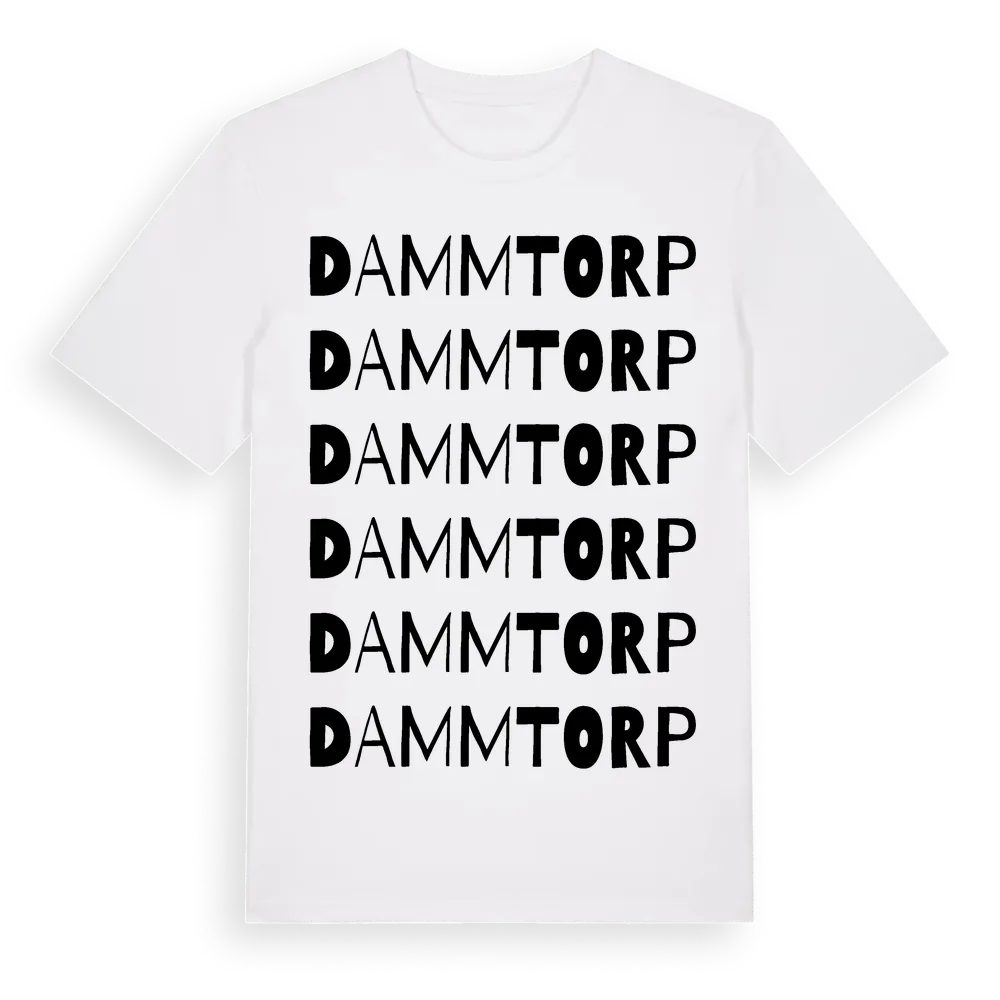 Dammtorp ordlek t-shirt är inspirerad av byn Dammtorp i Örebro län, Sverige. Tröjan är designad för dig som har en speciell koppling till platsen – oavsett om du bor här, har rötterna här eller bara älskar Dammtorp.