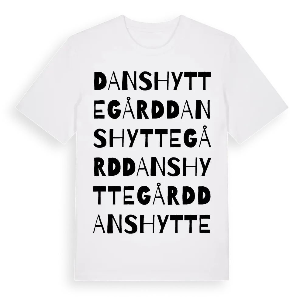 Danshytte Gård ordlek t-shirt är inspirerad av byn Danshytte Gård i Örebro län, Sverige. Tröjan är designad för dig som har en speciell koppling till platsen – oavsett om du bor här, har rötterna här eller bara älskar Danshytte Gård.