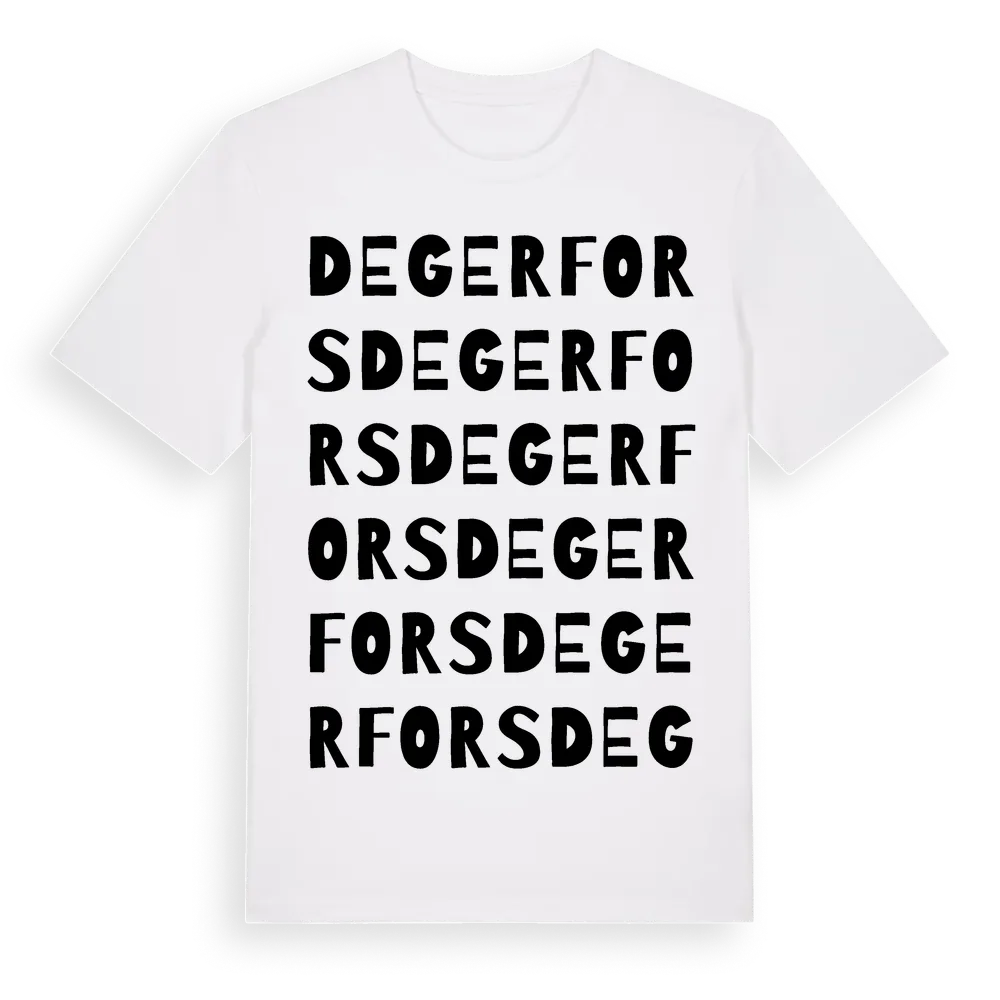 En ordlek byggd på Degerforss namn. Subtilt och klurig – ett motiv som bara de som verkligen känner platsen fullt ut förstår. Premium bomull, unisex – från staden Degerfors i Örebro län.