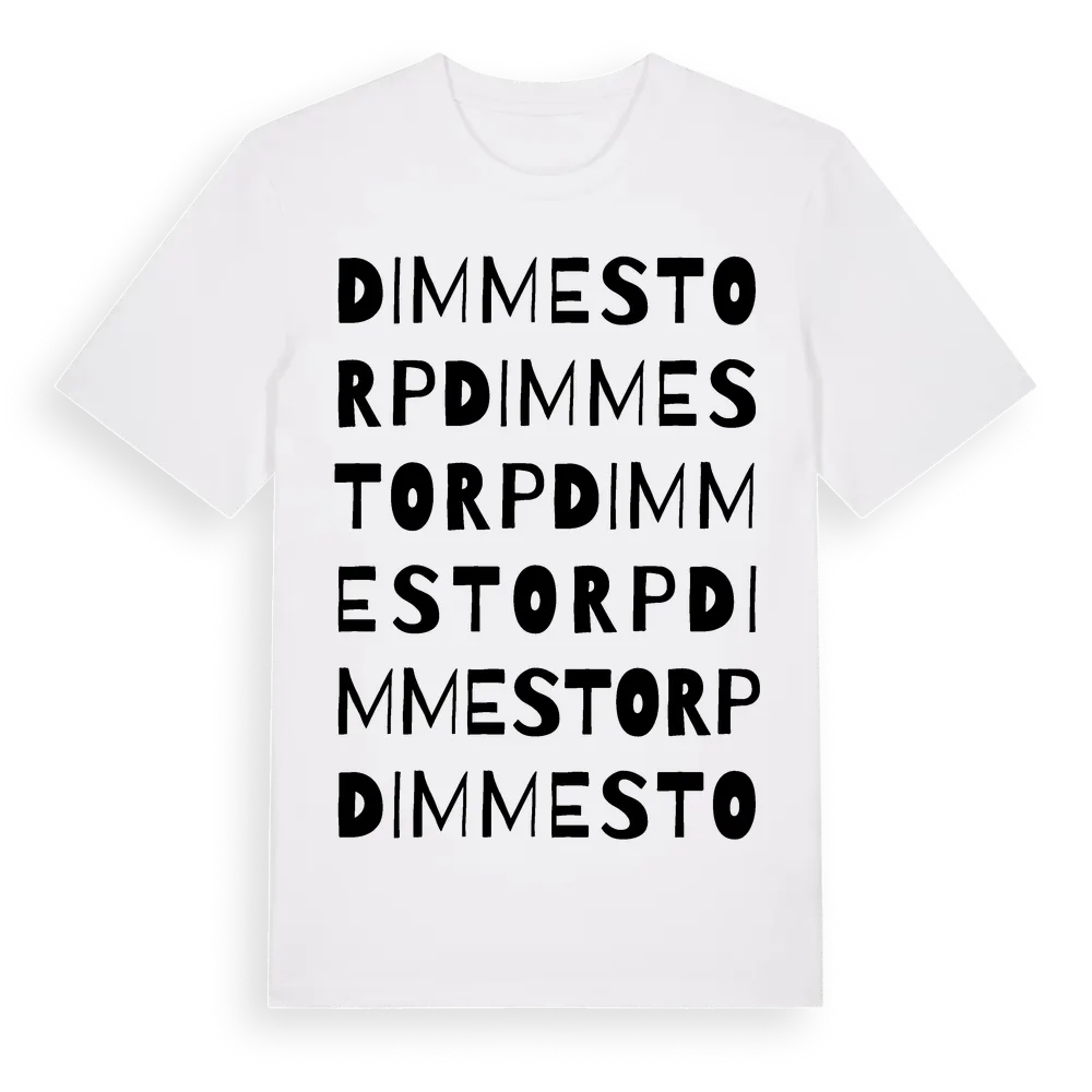 Dimmestorp ordlek t-shirt är inspirerad av Dimmestorp i Örebro län, Sverige. Tröjan är designad för dig som har en speciell koppling till platsen – oavsett om du bor här, har rötterna här eller bara älskar Dimmestorp.