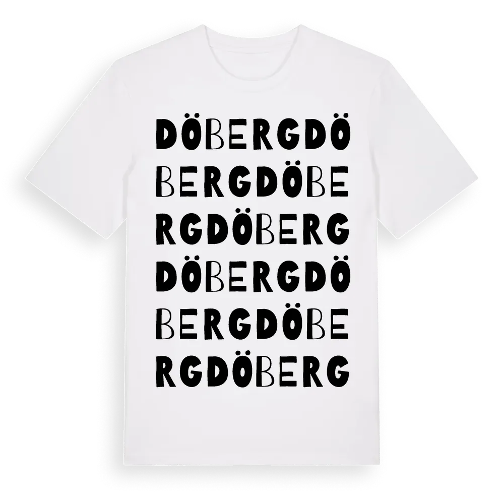 Döberg ordlek t-shirt är inspirerad av Döberg i Örebro län, Sverige. Tröjan är designad för dig som har en speciell koppling till platsen – oavsett om du bor här, har rötterna här eller bara älskar Döberg.
