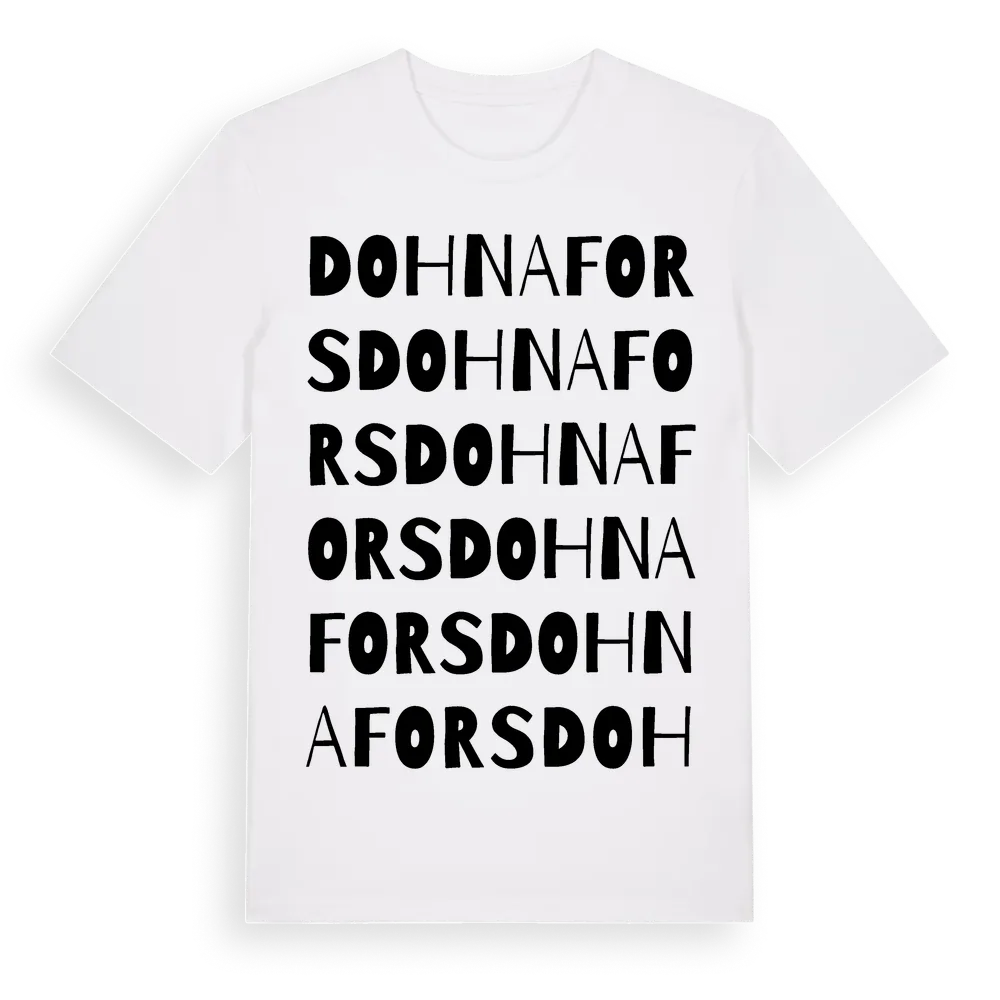 Dohnafors ordlek t-shirt är inspirerad av byn Dohnafors i Örebro län, Sverige. Tröjan är designad för dig som har en speciell koppling till platsen – oavsett om du bor här, har rötterna här eller bara älskar Dohnafors.
